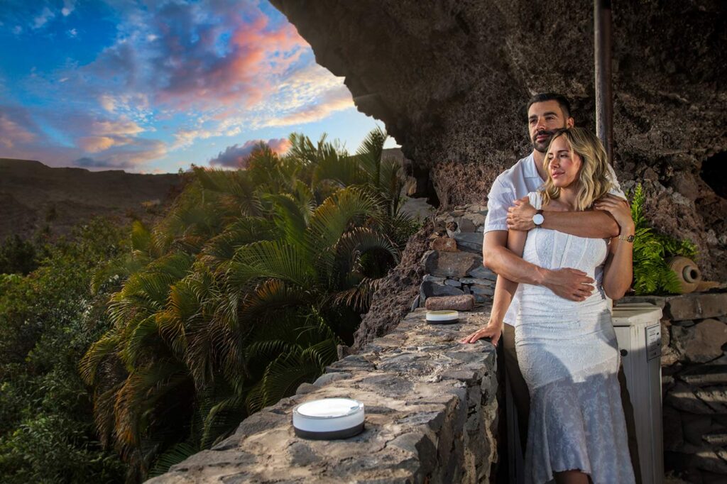 Questo lavoro mi vede impegnato come sceneggiatore e come fotografo. Ho scritto la sceneggiatura del video che sarà girato da Alfonso per quanto riguarda le riprese a terra e da Jonahtan per quelle aeree. Come fotografo invece devo fotografare i modelli in situazioni di lifestyle che raccontino cosa offrre l’Hotel Jardin Tecina e La Gomera.